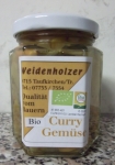 Zutaten: *Zucchini (44%) *Paprika (10%) *Zwiebel (10%) *Karotten (10%), °*Einlegeessig, *Apfelsaft, °*Rohrzucker, *Curry, *Einlegegewürz (enthält Senfkörner)