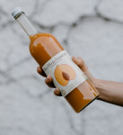 Der Pfirischnektar ist bereits mit Wasser verdünnt und eignet sich hervorragend zum Anstoßen mit Cider oder Sekt.